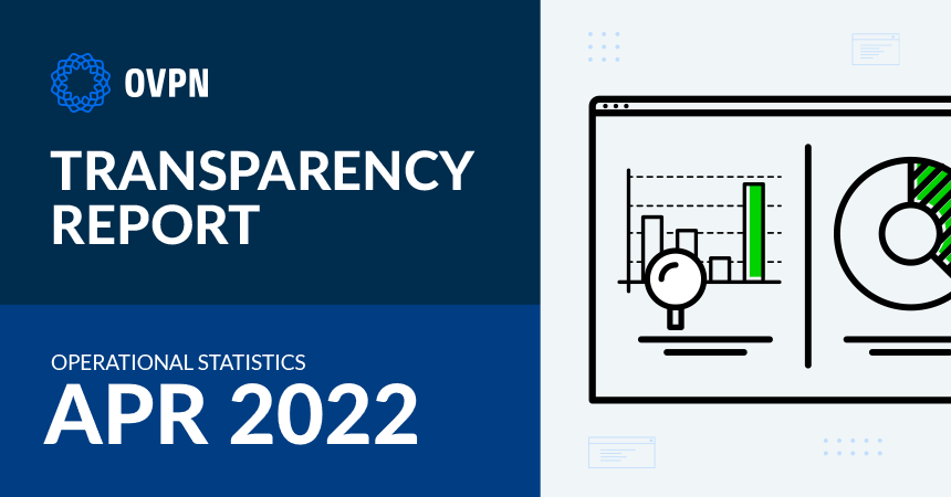 Throughout the month of April, our VPN servers had an uptime of over 99.5%. In total, the OVPN servers encrypted and anonymized 7460.8 TB of data.